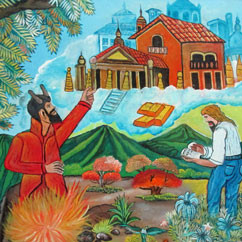 In an age when paintings are stored in vaults as investments and images are as disposable as the fast food wrappings they are printed on, we need to reconsider what the visual arts are all about. From the dawn of civilization, art-making had a special purpose. It was a way for humanity to express the inexpressible and give tangible form to a sense of the sacred. Whether prehistoric cave murals, Tibetan monastery sand paintings, or the frescoes of the Sistine Chapel, works of art have always played a central role in meditation and worship, illuminating sacred words.